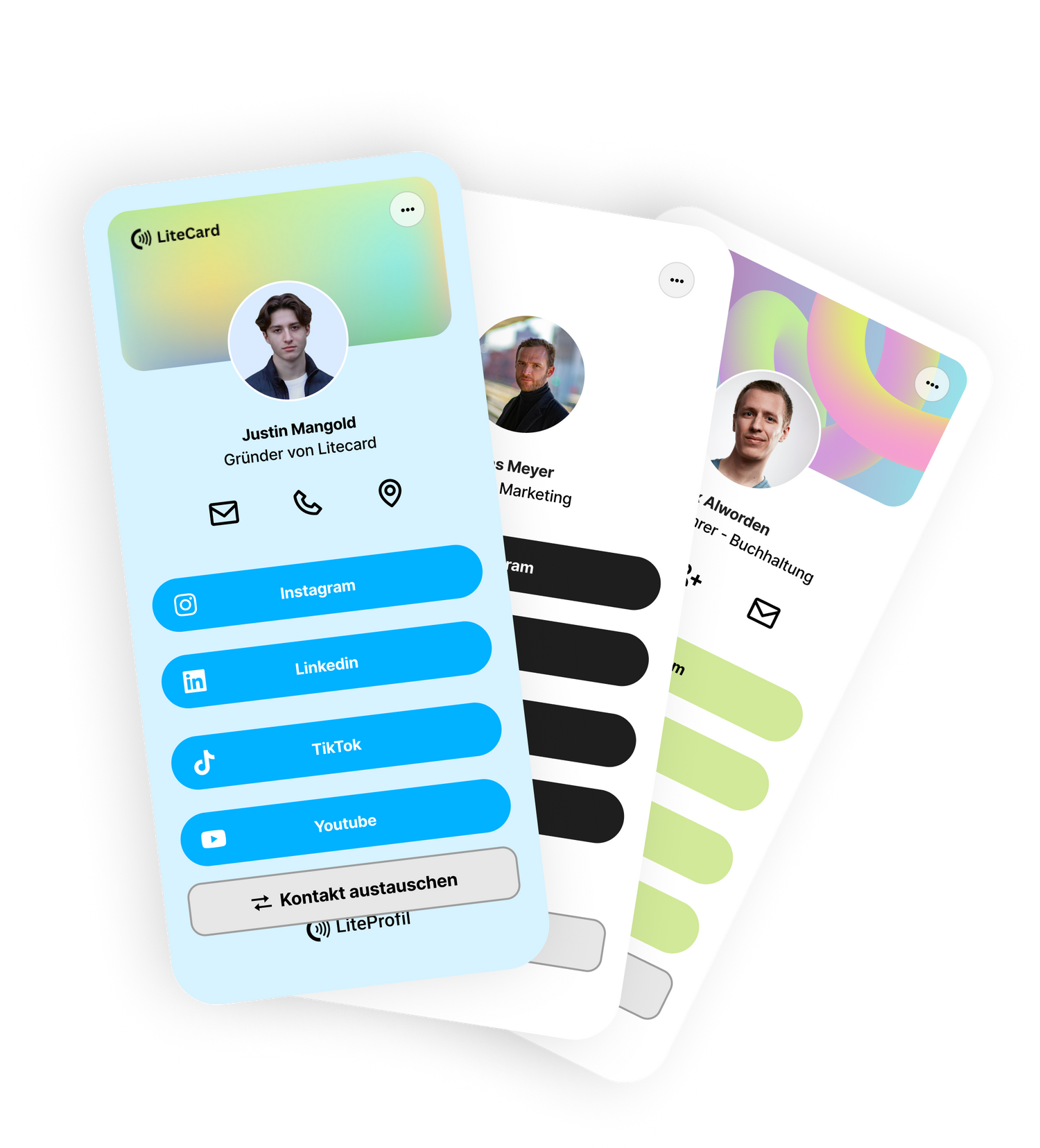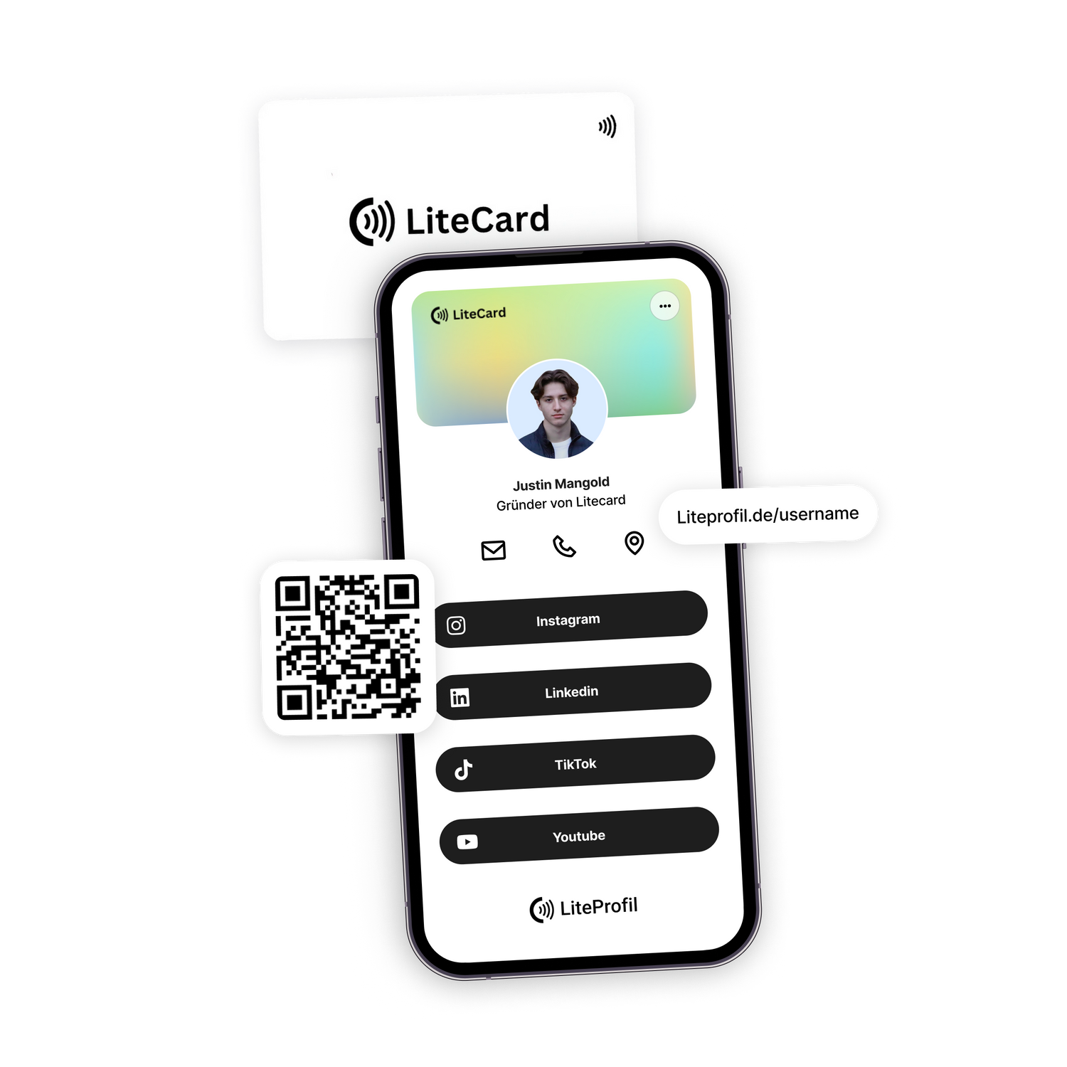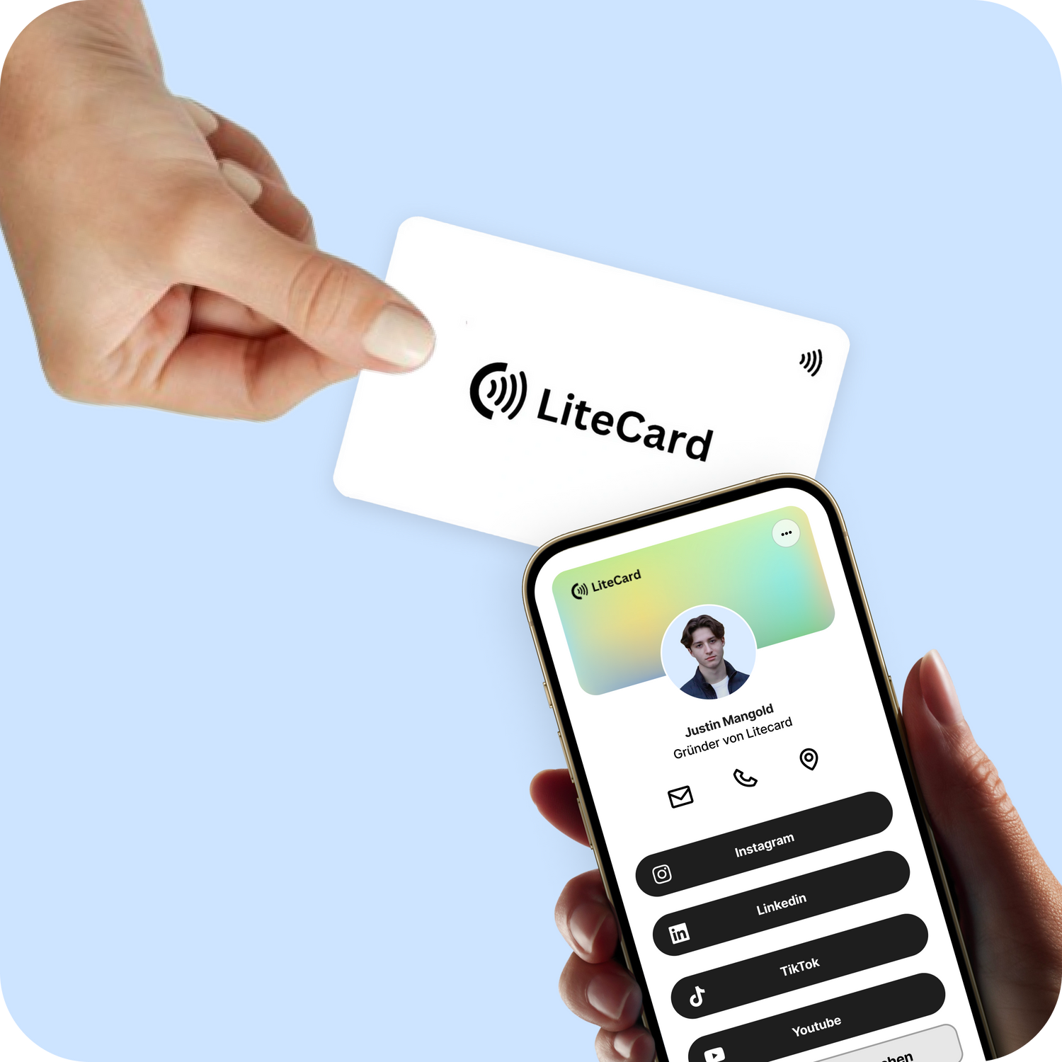 Die LiteCard ist eine digitale Visitenkarte, die es Ihnen ermöglicht, Ihre Kontaktdaten und Links über einen einfachen Scan oder Tap zu teilen. Sie aktualisiert Informationen in Echtzeit und erleichtert das Netzwerken enorm.