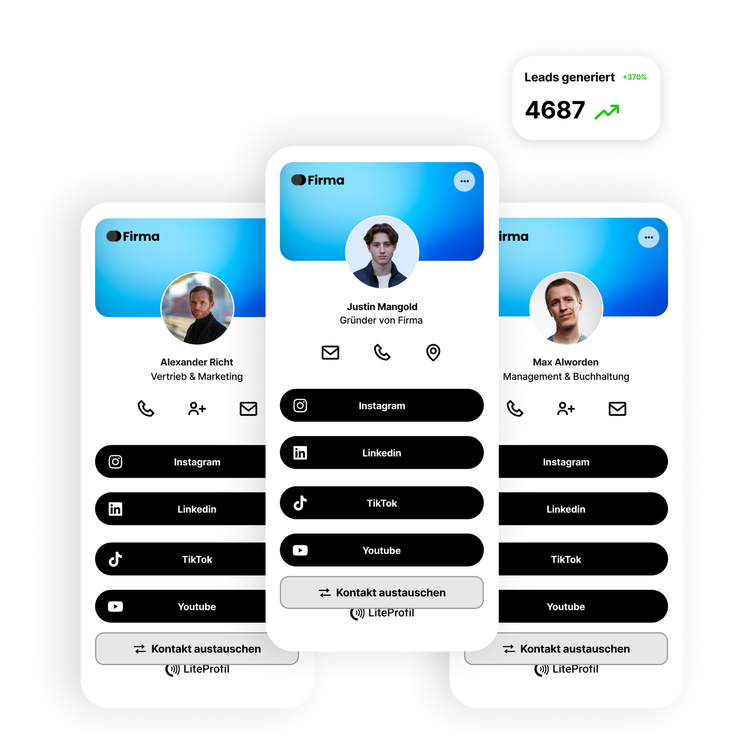 - Lead-Formular: Teilen Sie Ihr Profil, und erfassen Sie Leads automatisch - schnell und effizient.